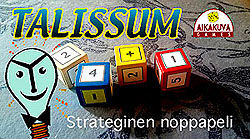 TALISSUM Heitetään neljää erikoisnoppaa joissa jokaisessa on laskutoimitusmerkki. Pisteitä saa vain laskutoimitusten avulla. Nopista voi tehdä yhdistelemällä isompia numeroita. Kehittää matematiikan taitoja! Paljon lisäpelejä! Tilaukset täältä |