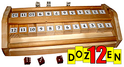 DOZEN12 Perinteisestä SHUT THE BOX pelistä tehty kolmen nopan versio jossa on kaksinpeli mahdollisuus. Tavoitteena siirtää noppia heittämällä keskellä peliä olevia puulaattoja pois pelistä. Paljon lisäpelejä! Tilaukset täältä |